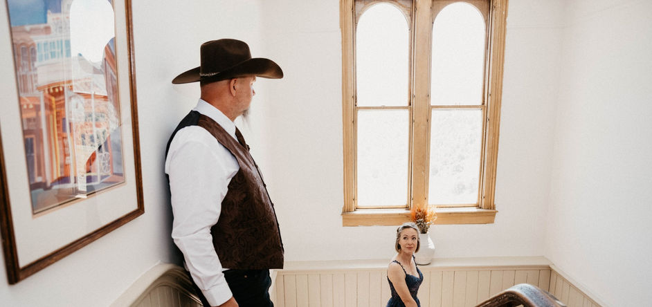 Our historic landmark building is situated in the perfect location for an outdoor wedding with the gorgeous town of Virginia City as a backdrop. Throw the bouquet from our balcony, enjoy your reception on the front grounds and spend the night in a building reserved just for you and your wedding party. Our venue offers one of a kind views and a beautiful, artsy experience in a historic masterpiece.